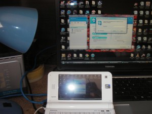 Тъй като връзката е безжична, Спигата може да се разнася без проблем из класната стая и резултатът ще е същия-прилична скорост на пренос на данните от единия десктоп на другия. Батерията на UMPC-то издържа повече от 3 часа на пълна натовареност/непрекъснато ползване/ , което би ми осигурило няколко интересни учебни часа! :))))